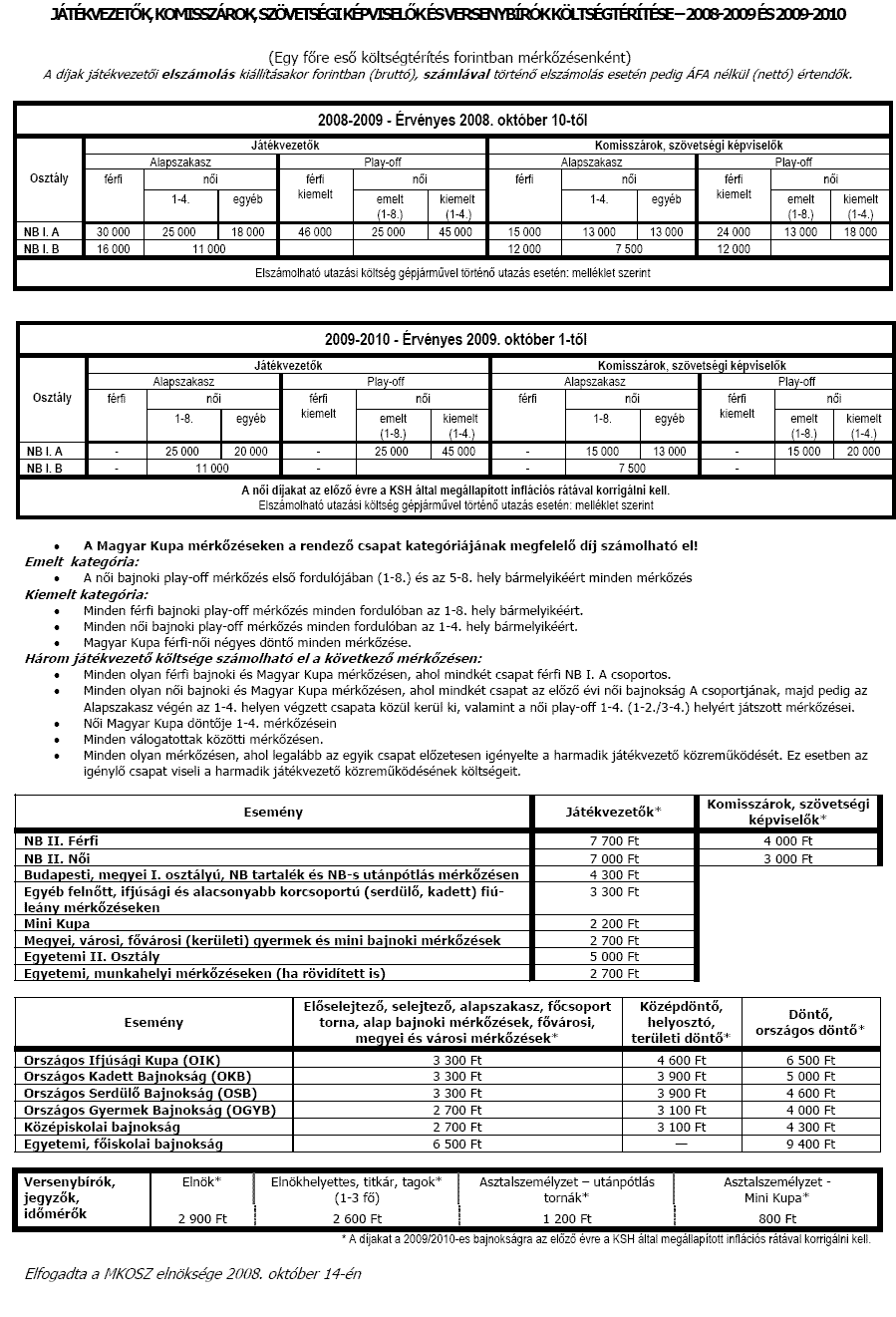 Elfogadta az MKOSZ elnöksége Budapest, 2008-10-13-án.