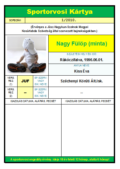 A JNSZ Megyei Kosárlabda Szövetség Verseny- és Nyilvántartási Bizottsága elnökét, Szabó László urat kértük arra, adjon információkat a csapatvezetők, edzők számára az újonnan életbe lépő Sportorvosi Kártya bevezetésével kapcsolatban. Íme az elnök úr rövid, de lényegi tájékoztatása, valamint közreadjuk a Sportorvosi Kártya mintáját is: