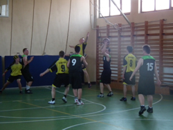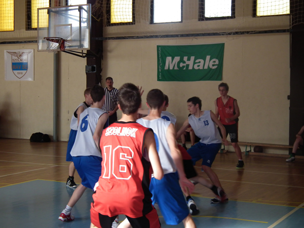 Folytatódott a megyei felnőtt bajnokság a 9-12. helyért. Ezúttal a két szolnoki sportiskolás alakulat játszott egymással, április 28.-án először, majd másnap is összecsaptak. A mérkőzés a papírformának megfelelően indult, az idősebb sportiskolás csapat gyorsan tíz pontos előnyt szerzett. Józsa mester már a 4. percben kikérte az első idejét, de ezzel sem tudta megváltoztatni a mérkőzés képét. Tóth Viktor fiai támadásban és védekezésben is az ellenfél fölé nőttek, a két csapat közt a különbség folyamatosan nőtt. A második félidő sem hozott változást, a csapatok ott folytatták, ahol a 20. perc után abbahagyták, az "A" csapat magabiztos győzelme egy pillanatig sem forgott veszélyben.